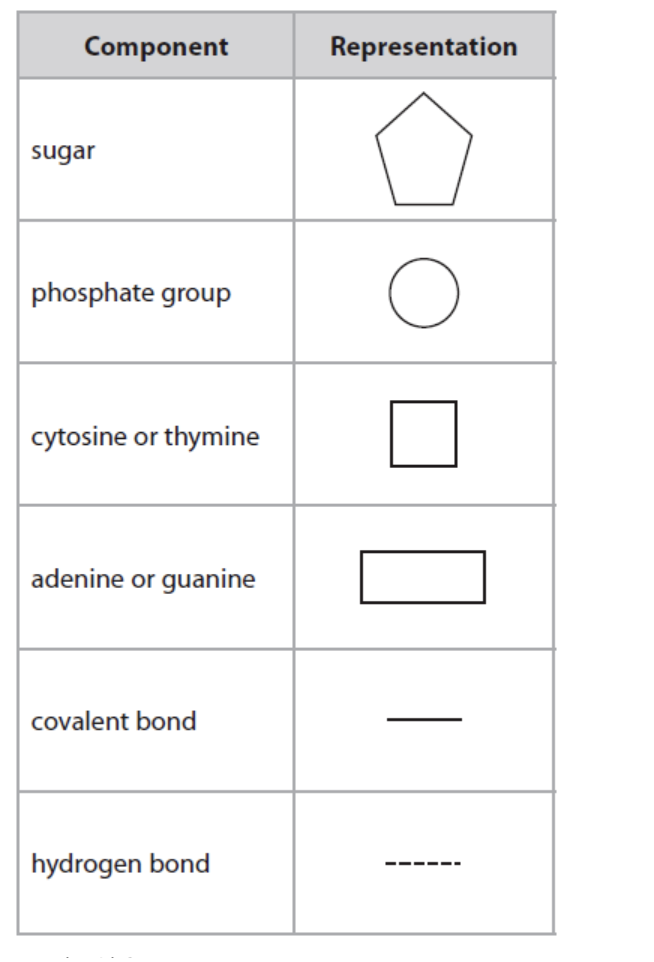 Both DNA and RNA are polynucleotides. The table shows how the components of polynucleotides can be represented.