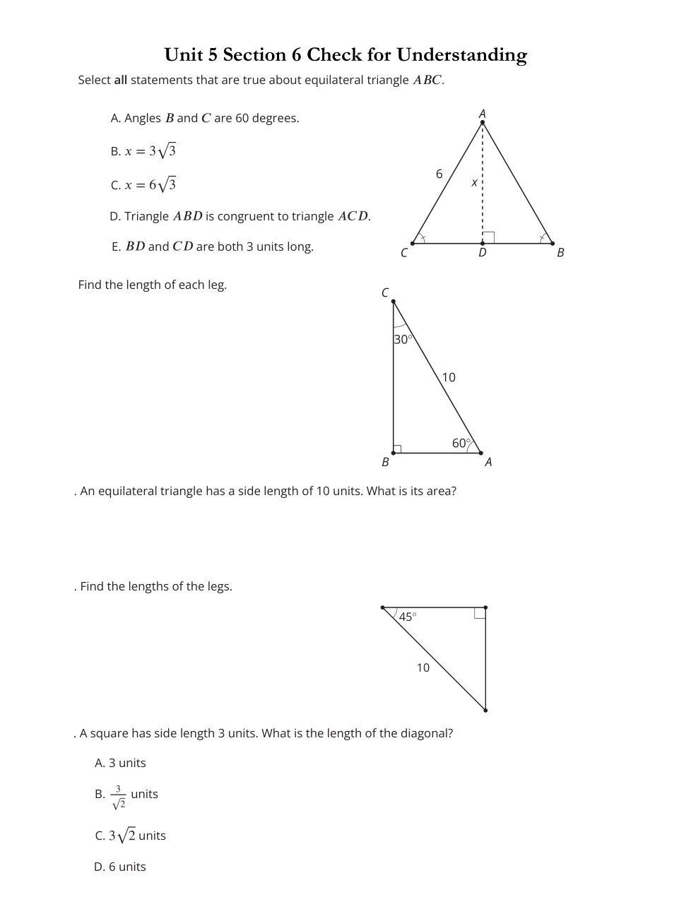 A 30-60-90 triangle has the given side measure(s). Find the possible missing side length(s). The sides are listed from smallest to largest:____, ____ 10.(separate your answers with a comma).