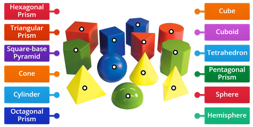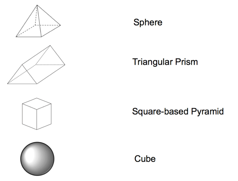 Square-based pyramid | arrow_right_alt | 5 faces, 9 edges and 6 vertices |