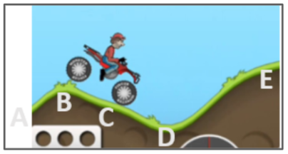 A skier is at the top of a slope. Draw the graph that would represent the KE as the skier starts down the slope.