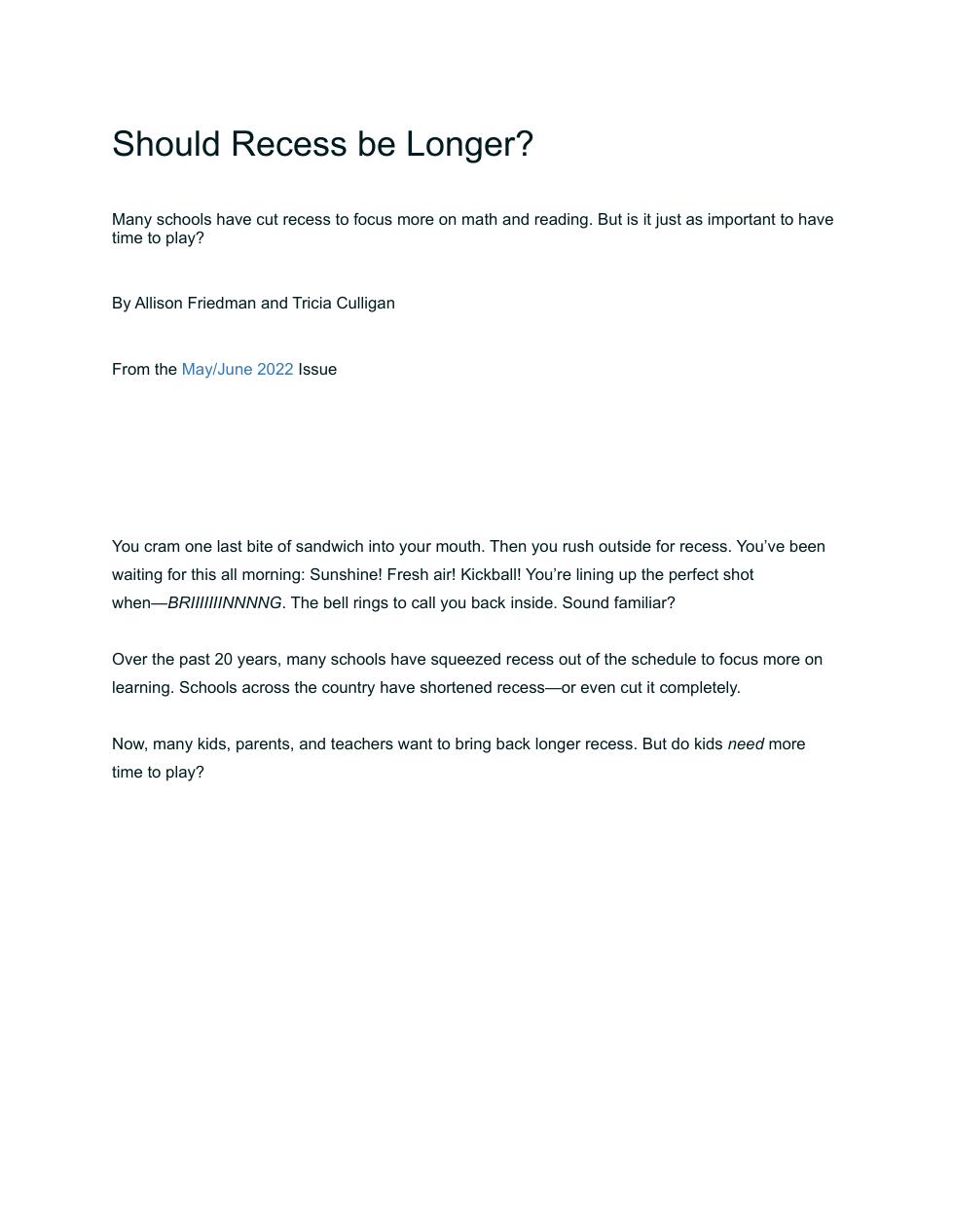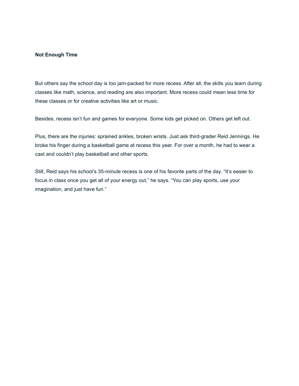 An opinion essay is all about expressing a view and backing it up with supporting evidence or details. So the first step is to decide what you think: Should recess at your school be longer?