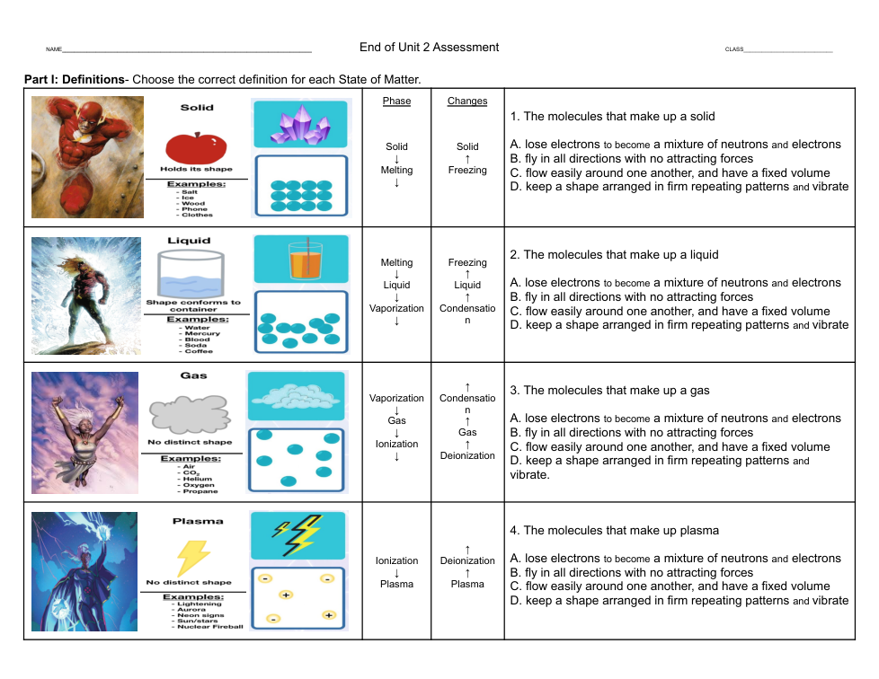 Be sure to describe the atoms and molecules in how they move in each state of matter.