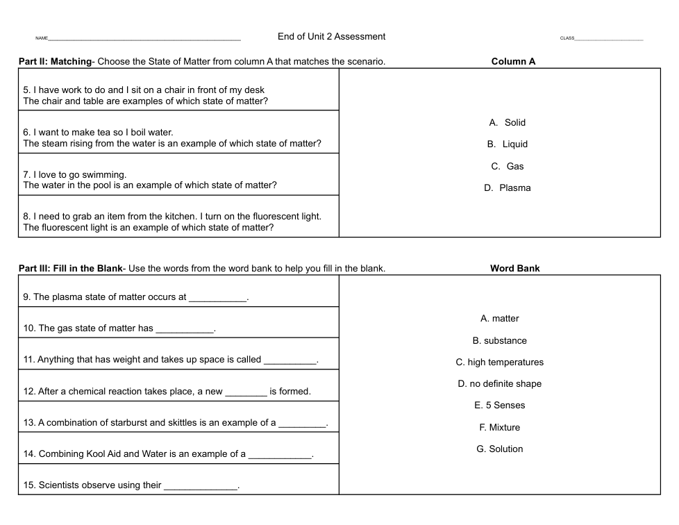 Unit 2 Summative Assessment (5th Grade)
