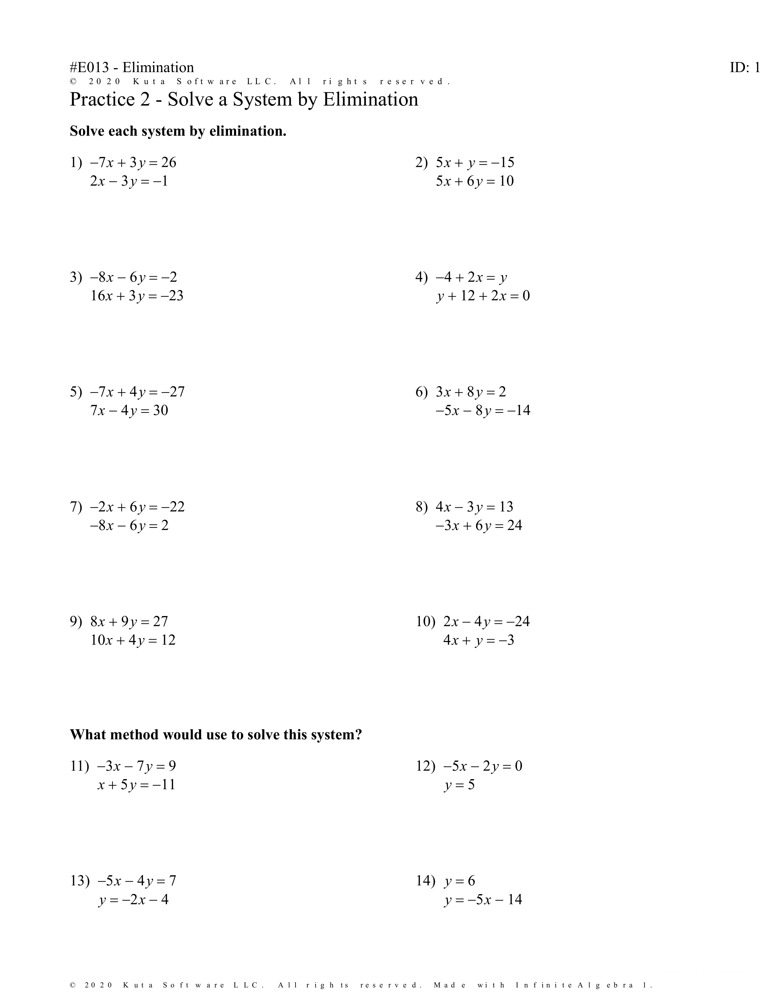 Solve the System by using Elimination. Answer must be an ordered pair (x, y)