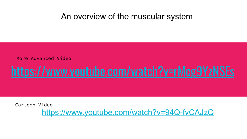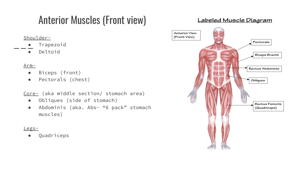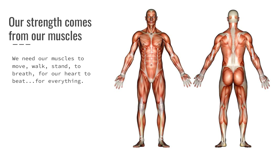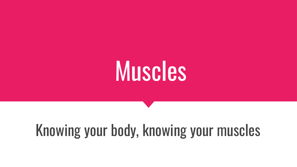 Muscles KWL: Before you go through this presentation share what you (K) know about muscles already, (W) would like to know about muscles, and then at the end before you submit come back to this question and add your (L) what you learned about muscles.