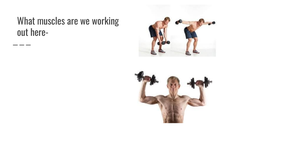 See if you can remember the names of the major arm muscles. If not go back to the previous slides for help. List those muscles being used in the pictures.
