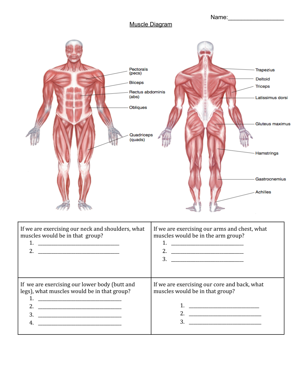 Match the muscle to the exercise: you may need to do a little research about an exercise to see what the main muscle group it works on is.