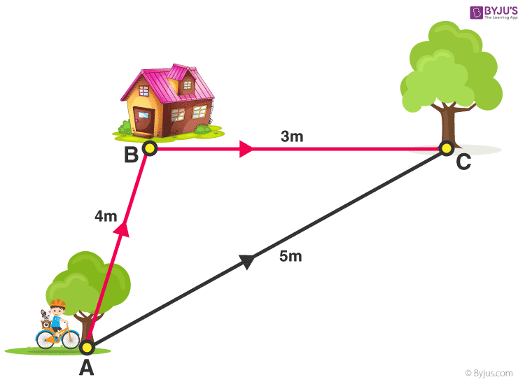Displacement is defined as the change in position of an object. It is a vector quantity and has a direction and magnitude. It is represented as an arrow that points from the starting position to the final position. For example- If an object moves from A position to B, then the object’s position changes. This change in position of an object is known as Displacement.