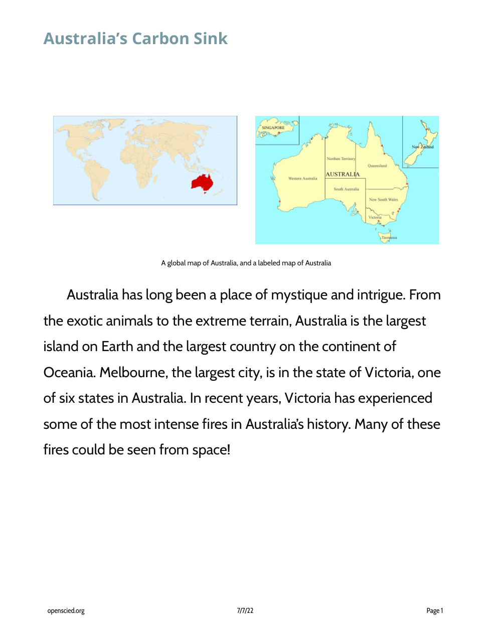 Carbon sinks are areas that store carbon. Examples of carbon sinks are peat and trees. In Australia, the carbon sink would be the eucalyptus trees.