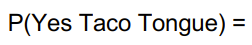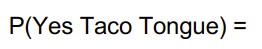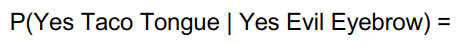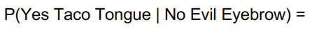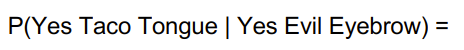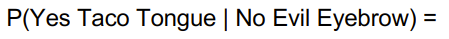 You would read this notation as "The Probability of a student being 'Yes Taco Tongue' GIVEN that they are 'Yes Evil Eyebrow'"