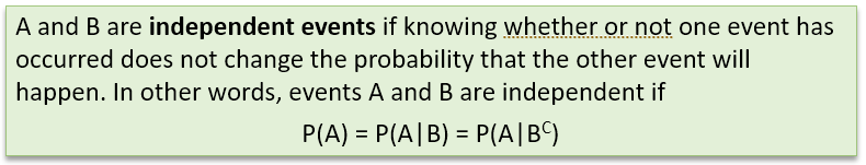 Frequently confused with Mutually Exclusive events. Remember that Mutually Exclusive events can't even happen at the same time. If one happens, you KNOW the other one didn't, so they are NOT independent.