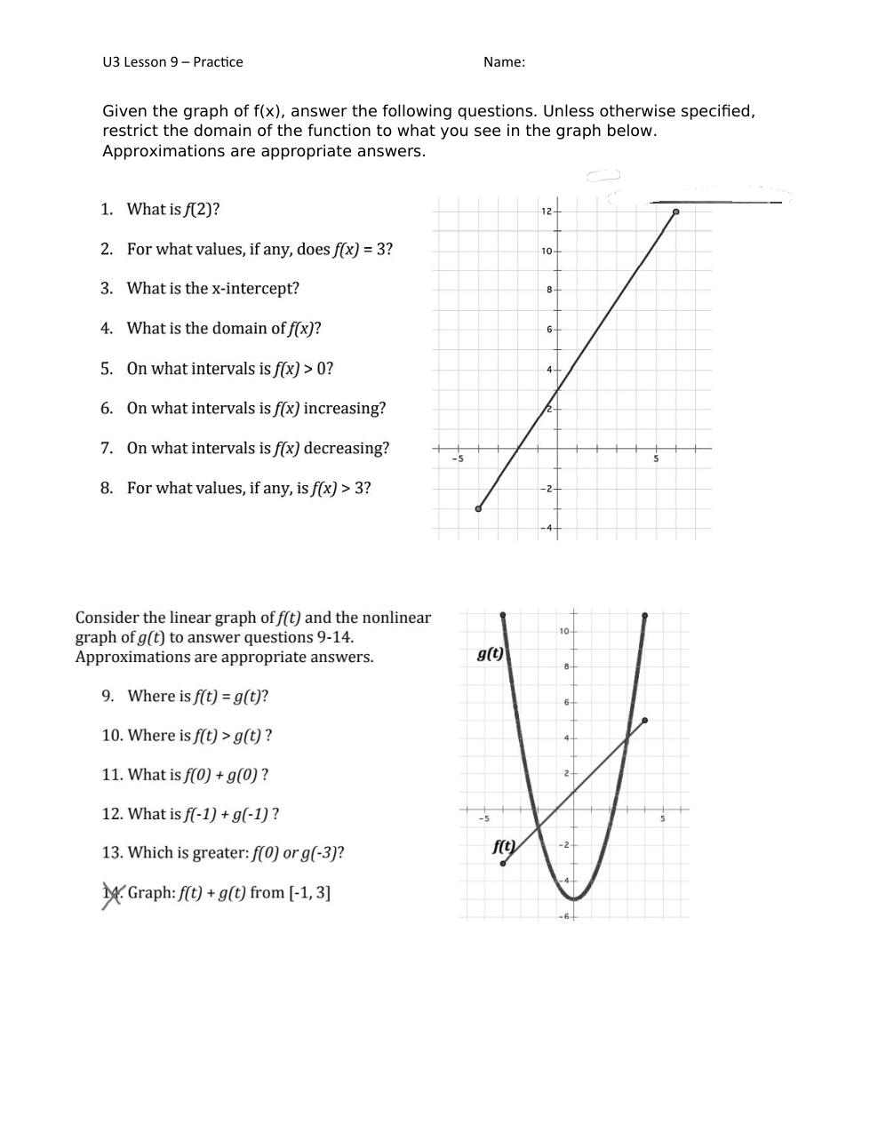 f(x)=g(x) | arrow_right_alt | The graphs of f(x) and g(x) intersect or the outputs are the same. |