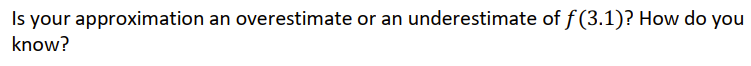 2. The tangent line approximation at x=4 is an OVERestimate of function values near x=4