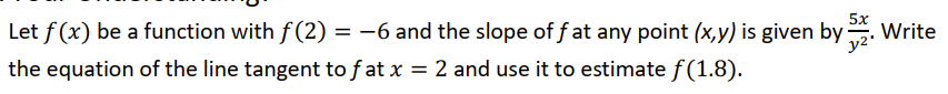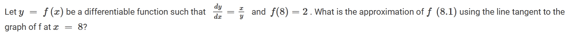 Let ℎ be a differentiable function such that ℎ(4) = 3 and ℎ′(4) = -2. If the tangent line to ℎ(𝑥) at 𝑥 = 4 is used to approximate the zeros of ℎ(𝑥), then the approximation is equal to: