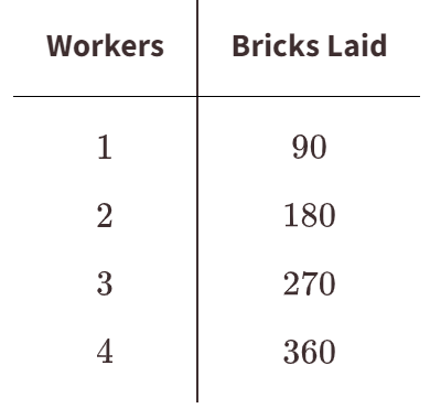 There is a discrete relationship between the number of workers and the number of bricks laid on a wall.