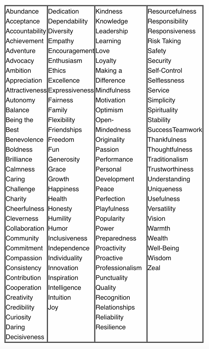 - Group the values in a way that makes sense to you. There are no right or wrong answers.