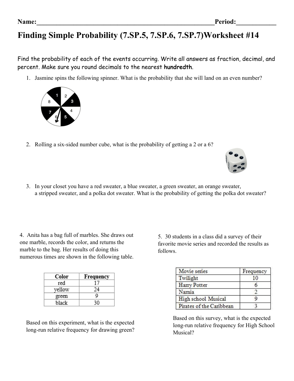 723LRIS WS#14 - (Green) Finding Simple Probability