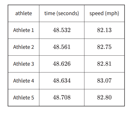 Do any of the athletes have the same top speed rounded to the nearest tenth of a mile per hour? What about rounded to the nearest mile per hour?