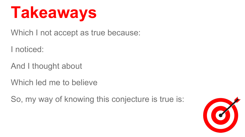 • Cuando noto un patrón en los ejemplos o mediante la experimentación, ¿cómo me convenzo de que mi conjetura siempre es cierta?