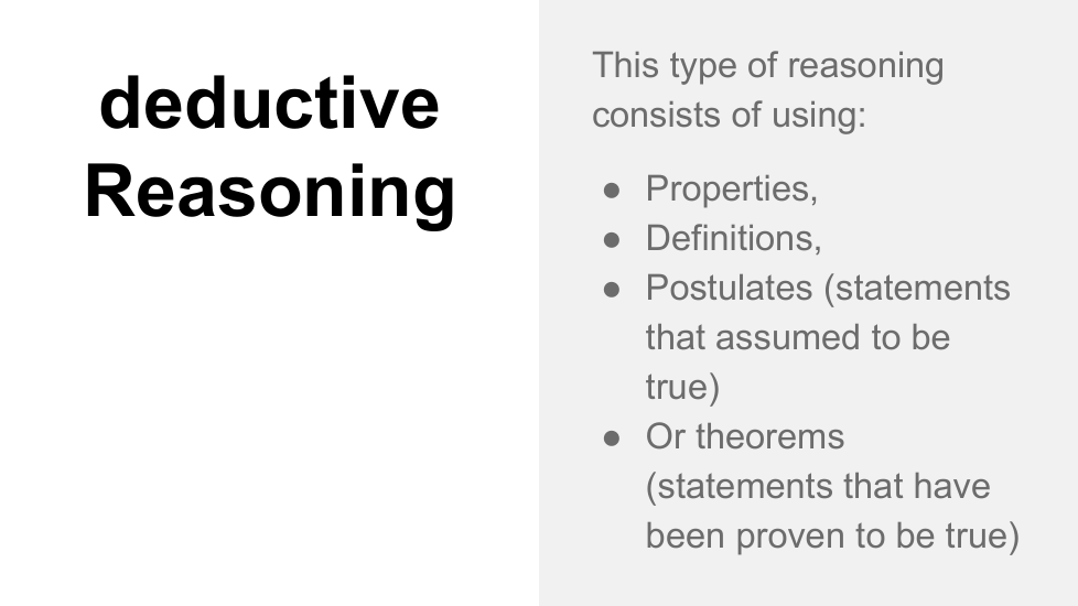 • Hacer un argumento basado en declaraciones previamente probadas y formas lógicas de razonamiento.