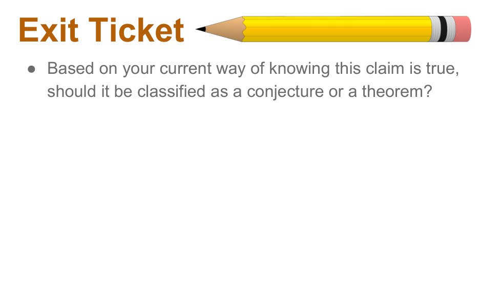 Based on your current way of knowing this claim is true, should it be classified as a conjecture or a theorem?