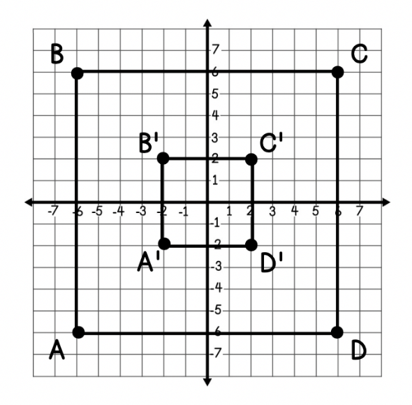 What scale factor was used to dilate ABCD to A'B'C'D'?