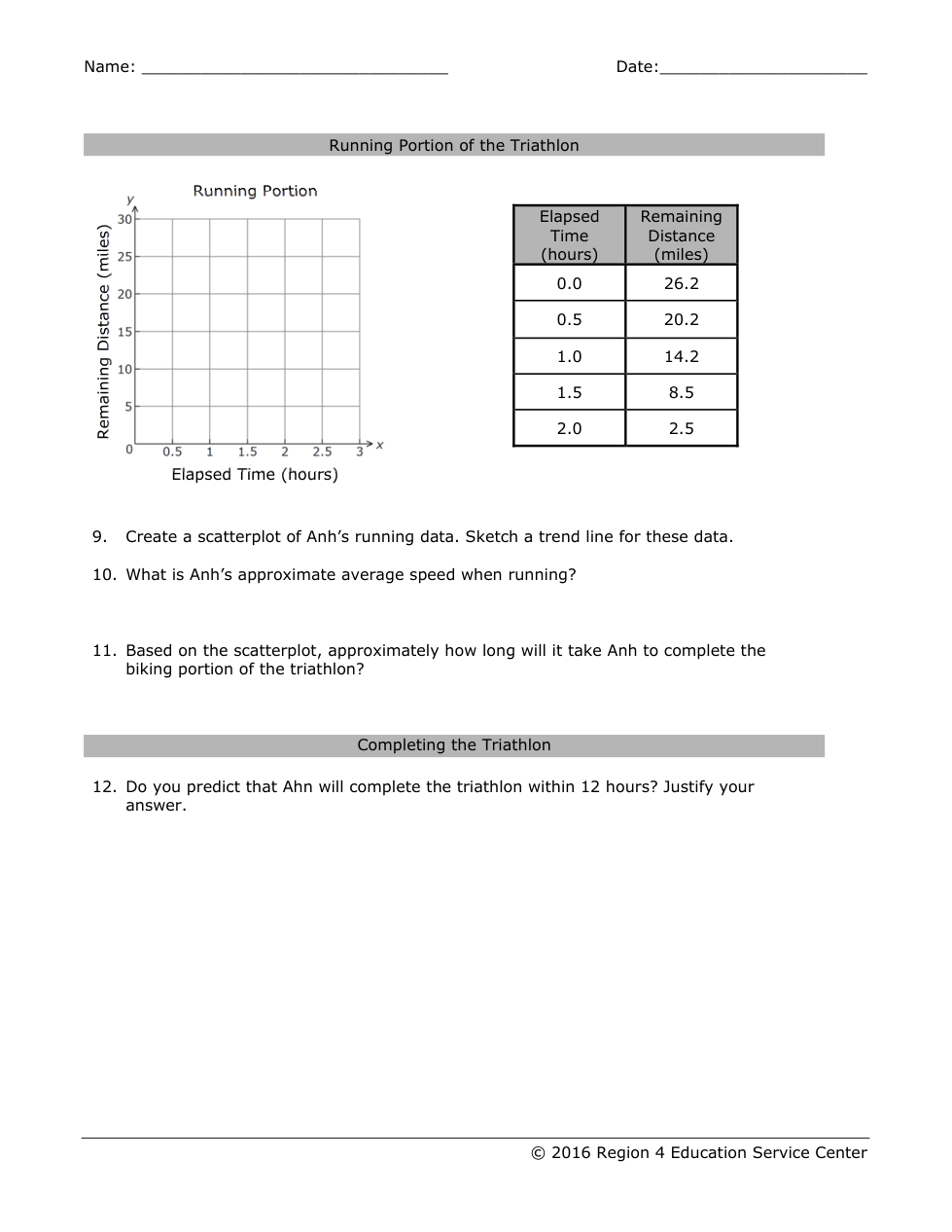 Do you predict that Ahn will complete the triathlon within 12 hours? Justify your answer.