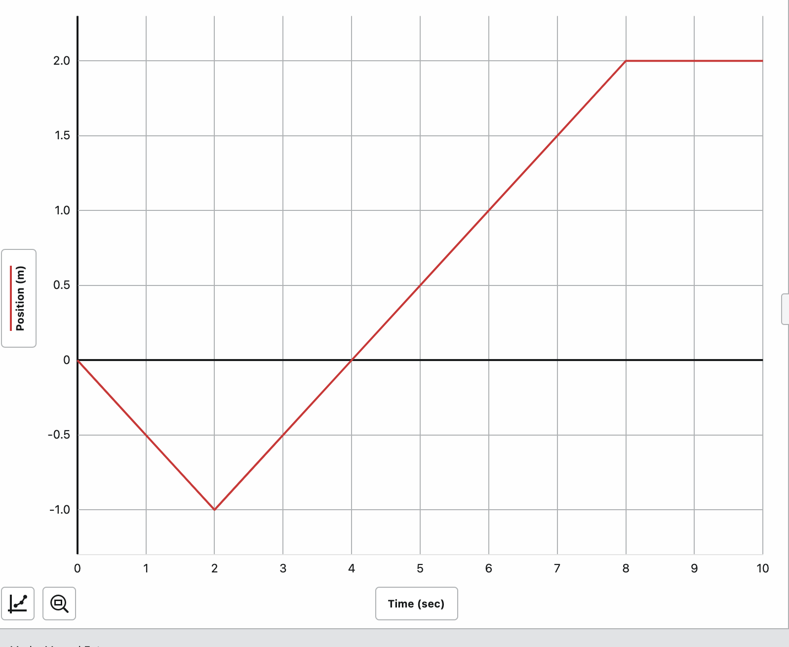 The velocity of this object between time = 4 and time = 8 seconds is: