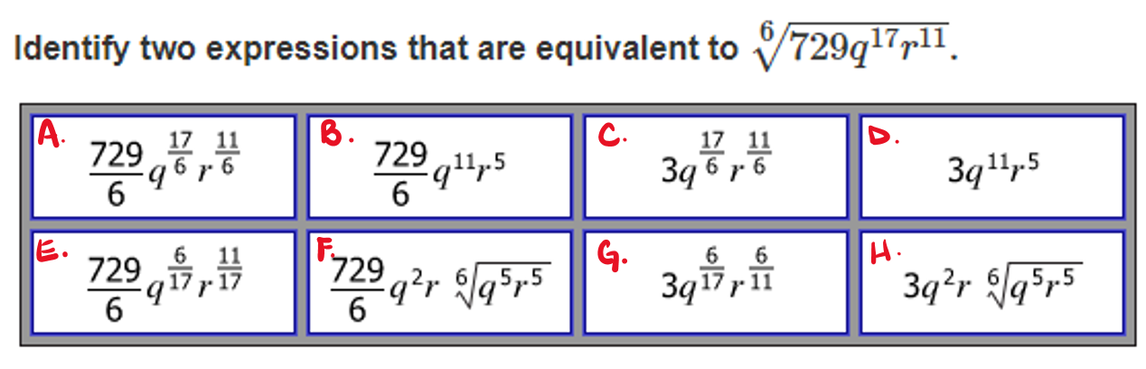 (fractions as exponents..REDUCE ANY FRACTIONAL EXPONENTS!!)