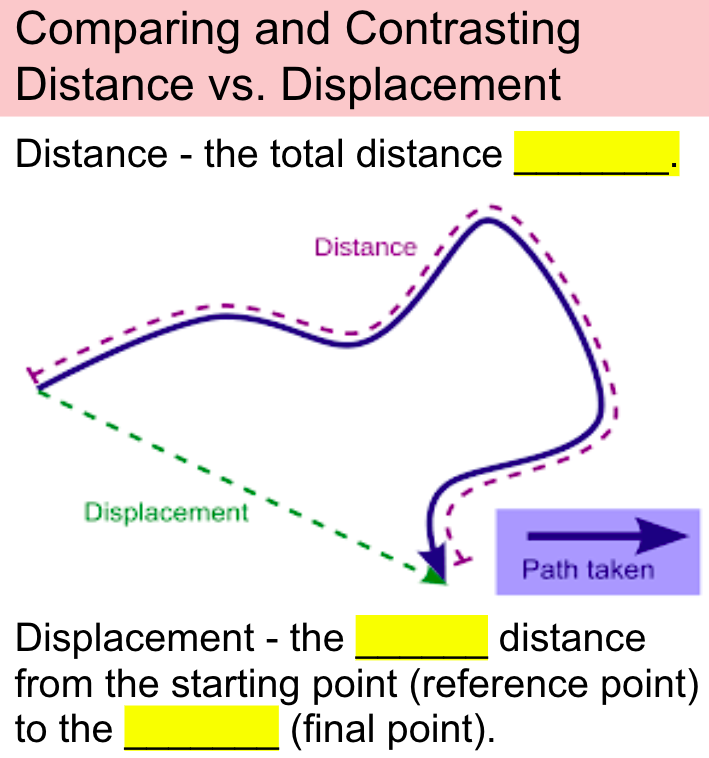 Displacement - the ______ distance from the starting point (reference point) to the _______ (final point).