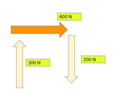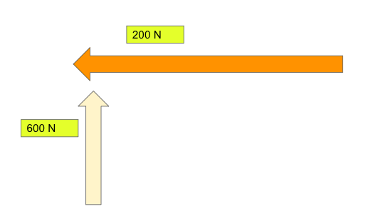 Marcos pushed a car with a force of 200N north and then pushed the car with a force of 600N East.