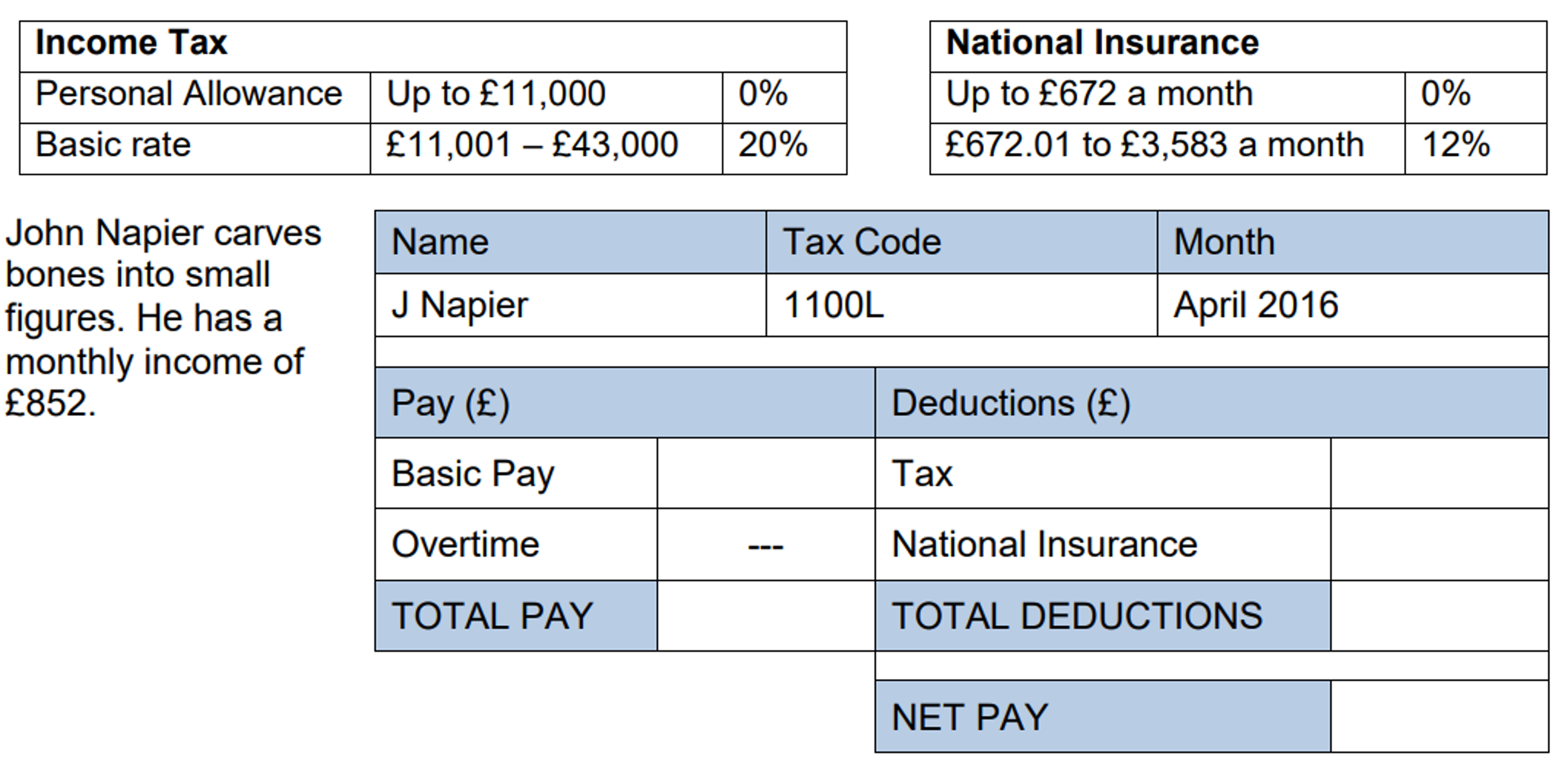 Complete the payslip.