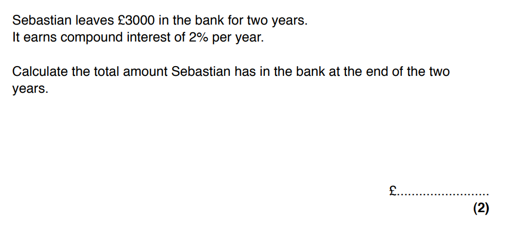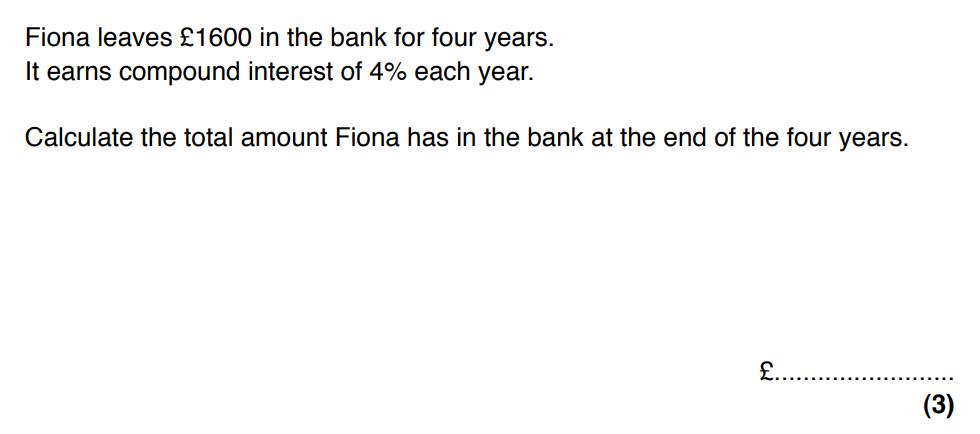 Which calculation would calculate the value of a £3000 investment after 4 years of compound interest at 3%?