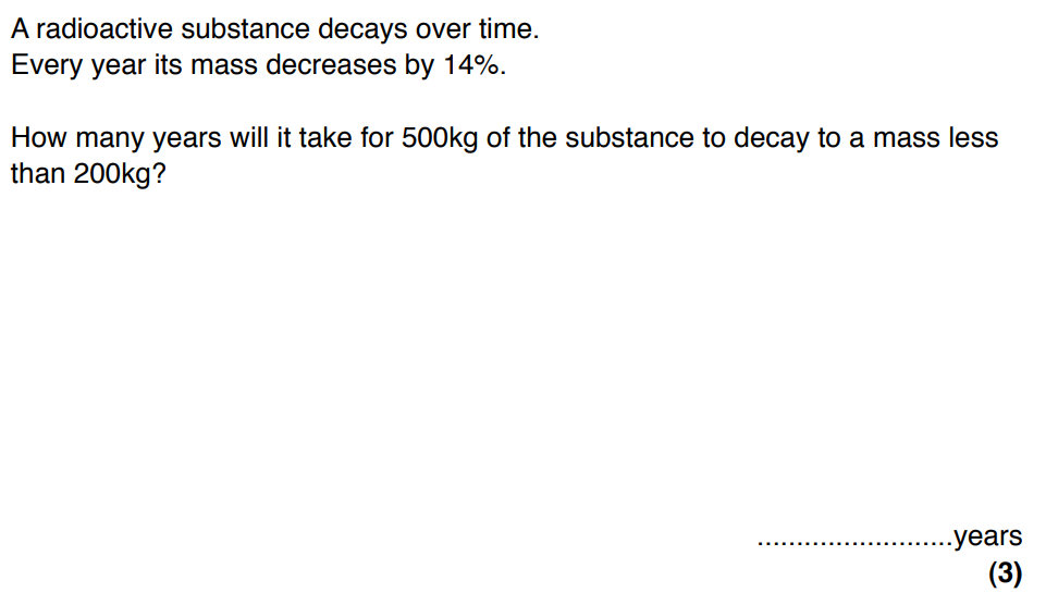 What will the mass be after the number of years you identified? (Round to the nearest whole numer)