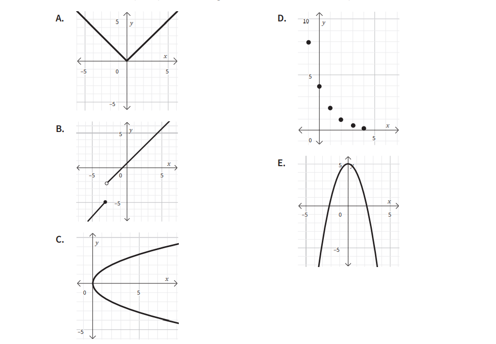 Use the mathematical features to analyze each relationship and choose which graph doesn’t belong with the others. Explain your reasoning with mathematical vocabulary.