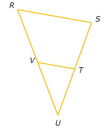 T is the midpoint of SU and V is the midpoint of RU.