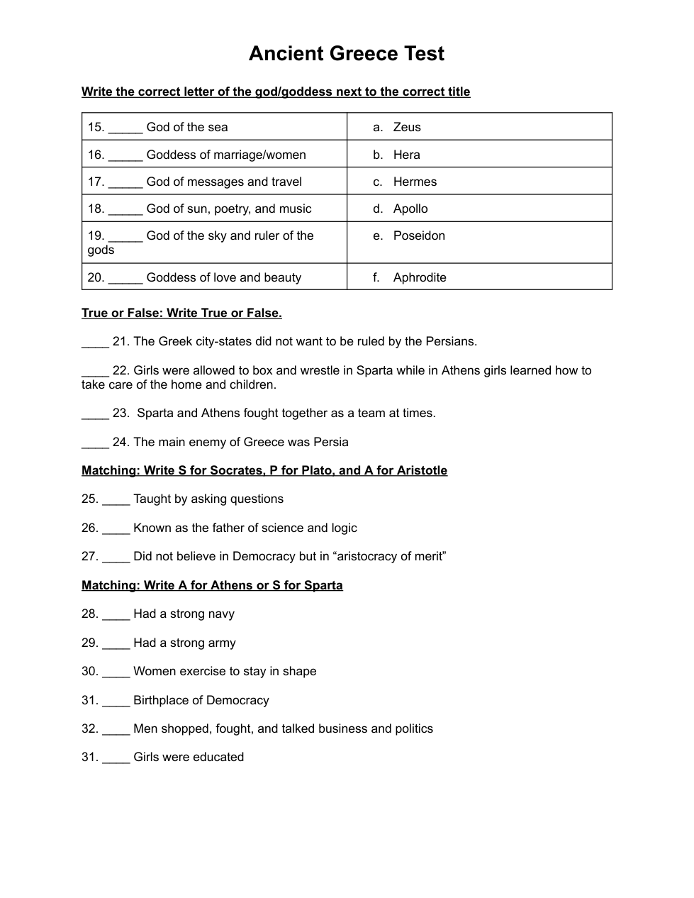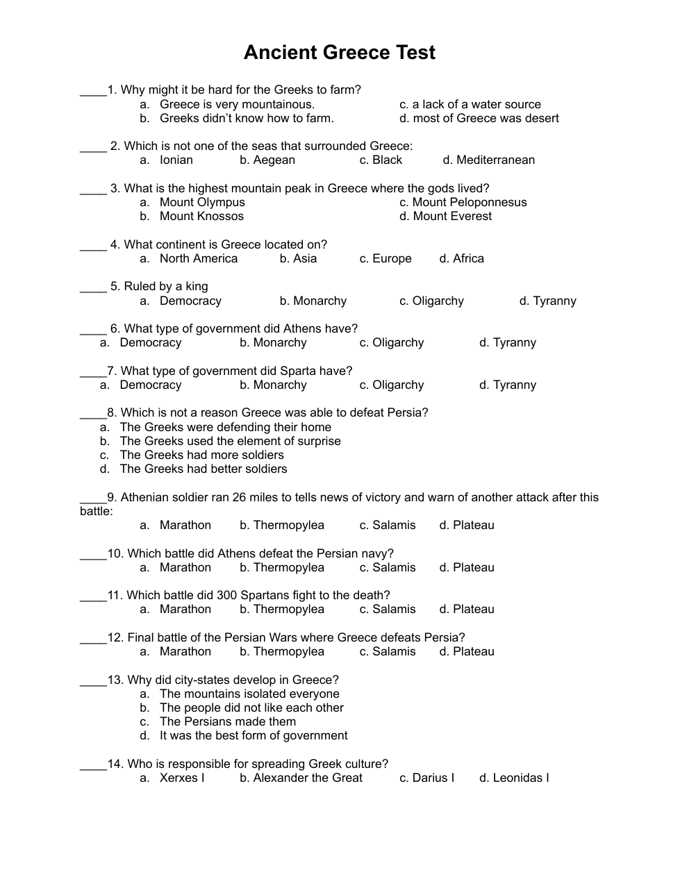 Unit Test: Ancient Greece