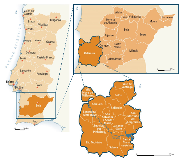 Observe a figura 1A onde se ilustra o estuário do rio Sado. e a figura 1B, que representa uma determinada dividão territorial de Portufgal Continental.