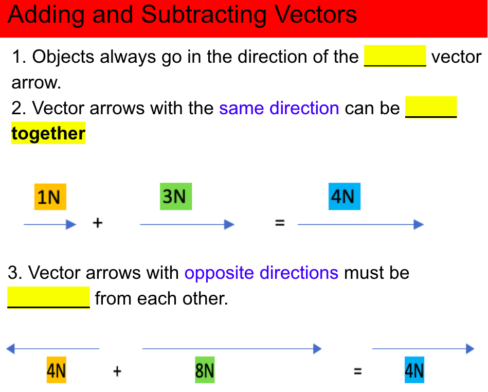 For each question, add (same direction arrows) and subtract (opposite direction arrows) to get the units. Then draw the correct arrow direction and size associated with the units.