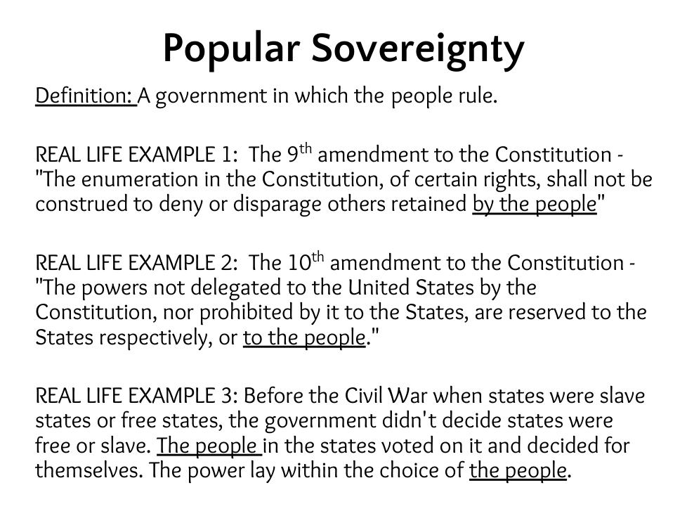 We the People…” Our Constitution begins with the idea of popular sovereignty. The Framers began the U.S. Constitution with this important principle, which means that power begins with the people. Popular sovereignty is the idea that average citizens can be trusted to make important decisions that affect their lives and the lives of other Americans. Throughout American history, more and more citizens were permitted to participate in the democratic process. The idea that power can begin from the ground up; that a group of people can exercise that power and change their society for the better is an exciting idea in human history.