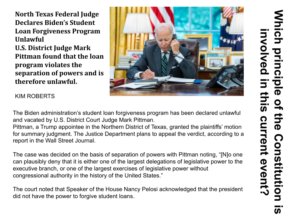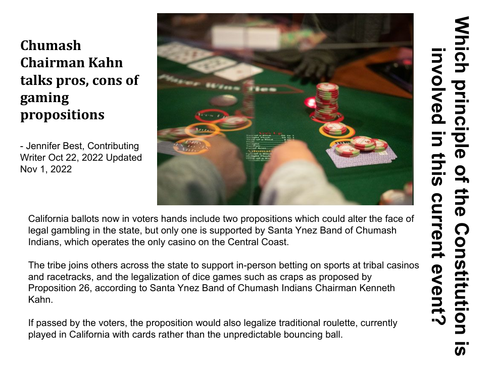 This principle of the Constitution is closely connected with Separation of Powers. The Founding Fathers wanted to make sure that the three different branches of government, the legislative, executive and judicial, would be able to limit each other’s powers. For example, the President can appoint ambassadors or federal judges, but only with the approval of the Senate, the upper house of Congress. This is a very important way to protect the citizens’ liberties and ensure that no one group of people becomes too powerful. Each branch always has the other two branches looking over their shoulder.