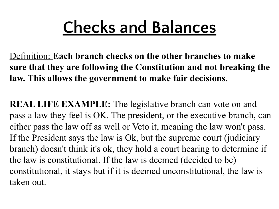 Individual rights | arrow_right_alt | each branch of government controls the others |