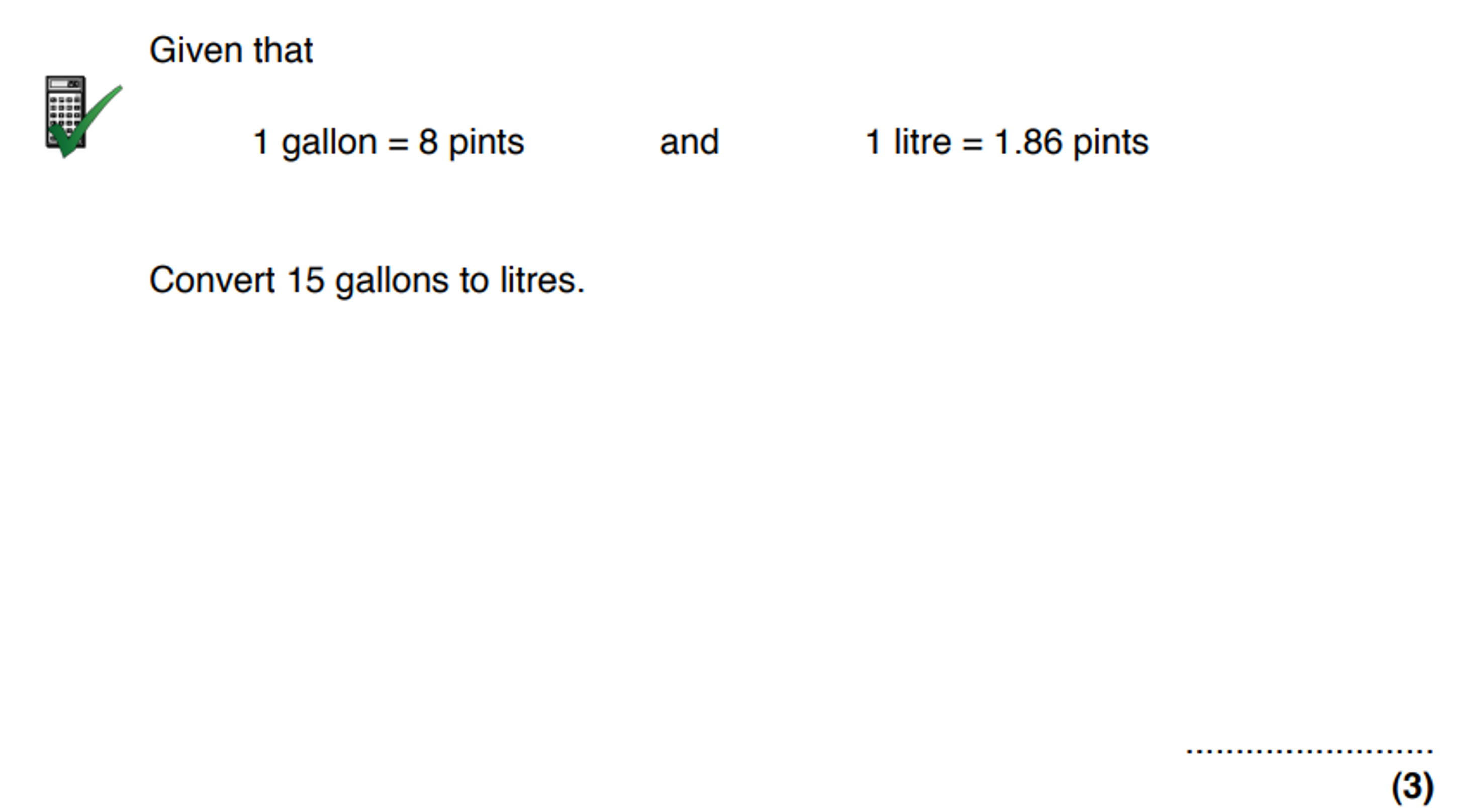 Convert 15 gallons to litres. Give your answer to 1 decimal place.