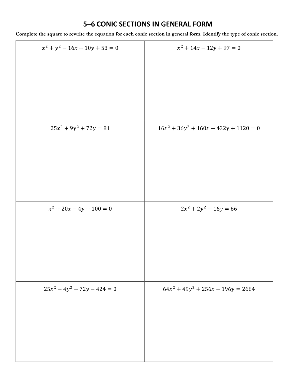 Write the equation for the conic section in general form.