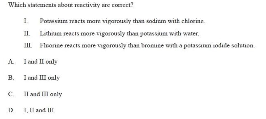 IB Diploma Chemistry Topic 3 13 MCQ Strength Test