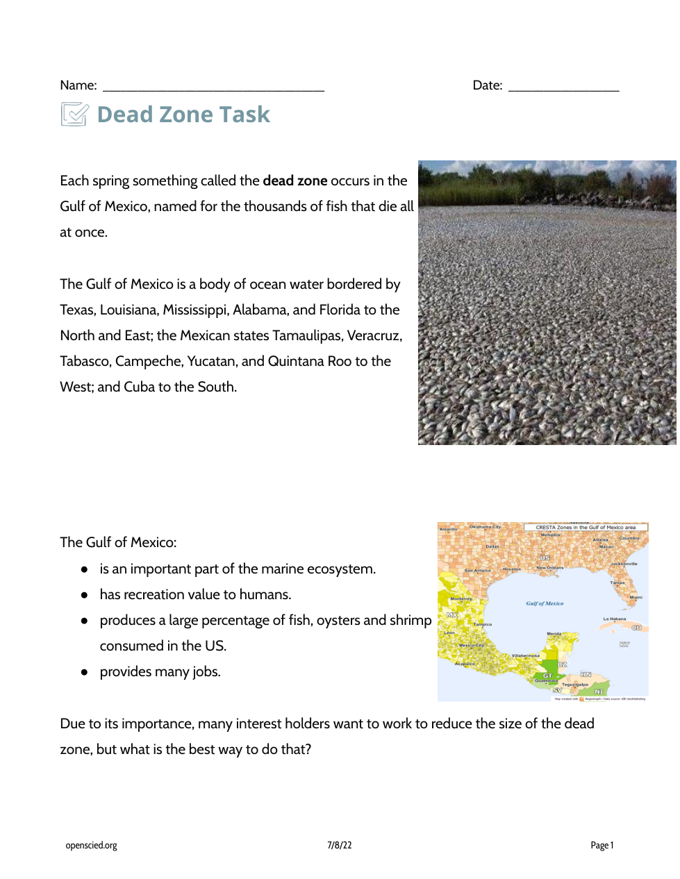 Many conservation groups would like to reduce the size of the dead zone. Using evidence from your model and the data in this task, propose a solution that might reduce the size of the dead zone.State your Solution AND state why you think this solution will work (cite at least 2 pieces of evidence)