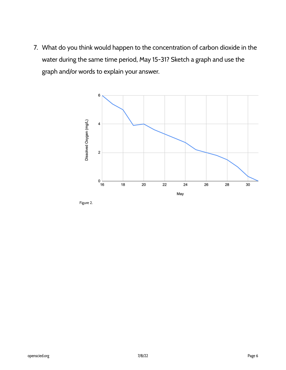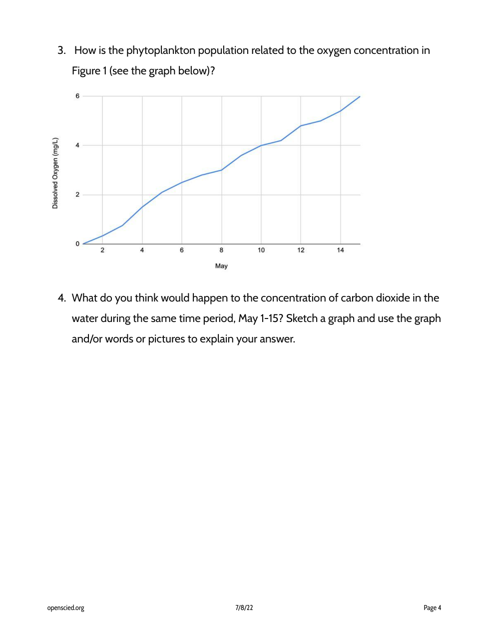 What do you think would happen to the concentration of carbon dioxide in the water during the same time period, May 1-15? Sketch a graph and use the graph and/or words or pictures to explain your answer.