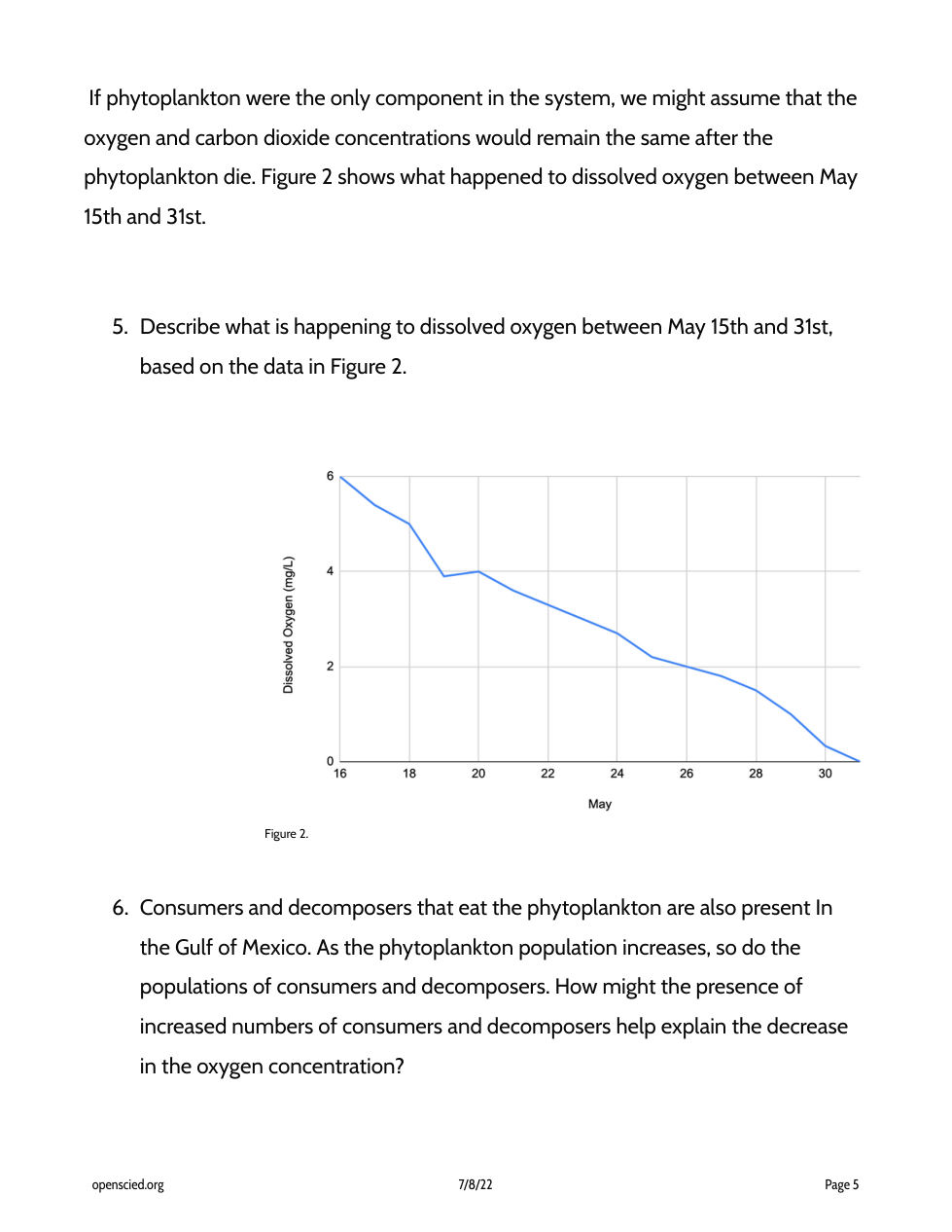 Consumers and decomposers that eat the phytoplankton are also present In the Gulf of Mexico. As the phytoplankton population increases, so do the populations of consumers and decomposers. How might the presence of increased numbers of consumers and decomposers help explain the decrease in the oxygen concentration?