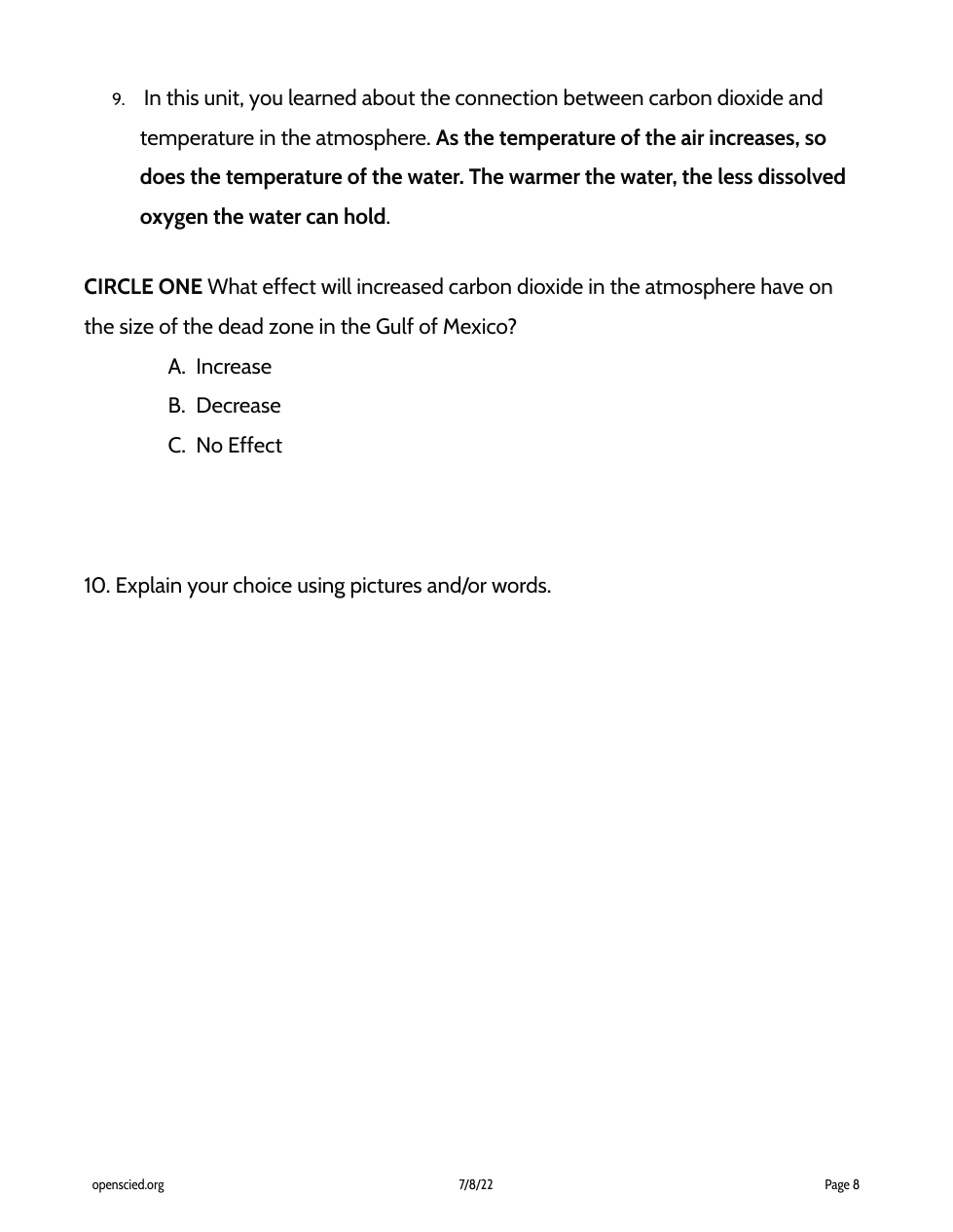 What effect will increased carbon dioxide in the atmosphere have on the size of the dead zone in the Gulf of Mexico?