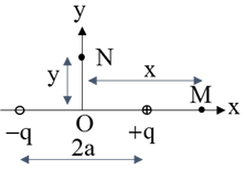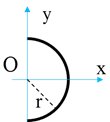 Cho một cung dây hình bán nguyệt như hình vẽ bên, cung dây mang điện tích phân bố đều với điện tích Q=3.10-7 C và được đặt trong chân không. Hãy xác định lực Coulomb tác dụng lên điện tích q = 10-9 C đặt tại tâm của cung dây, biết bán kính cung dây là 10 cm.